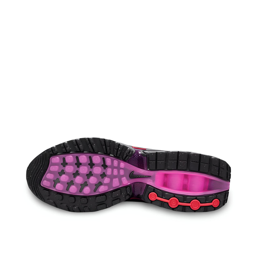 Bold red-to-purple gradient multilayered mesh upper with textured haptic print